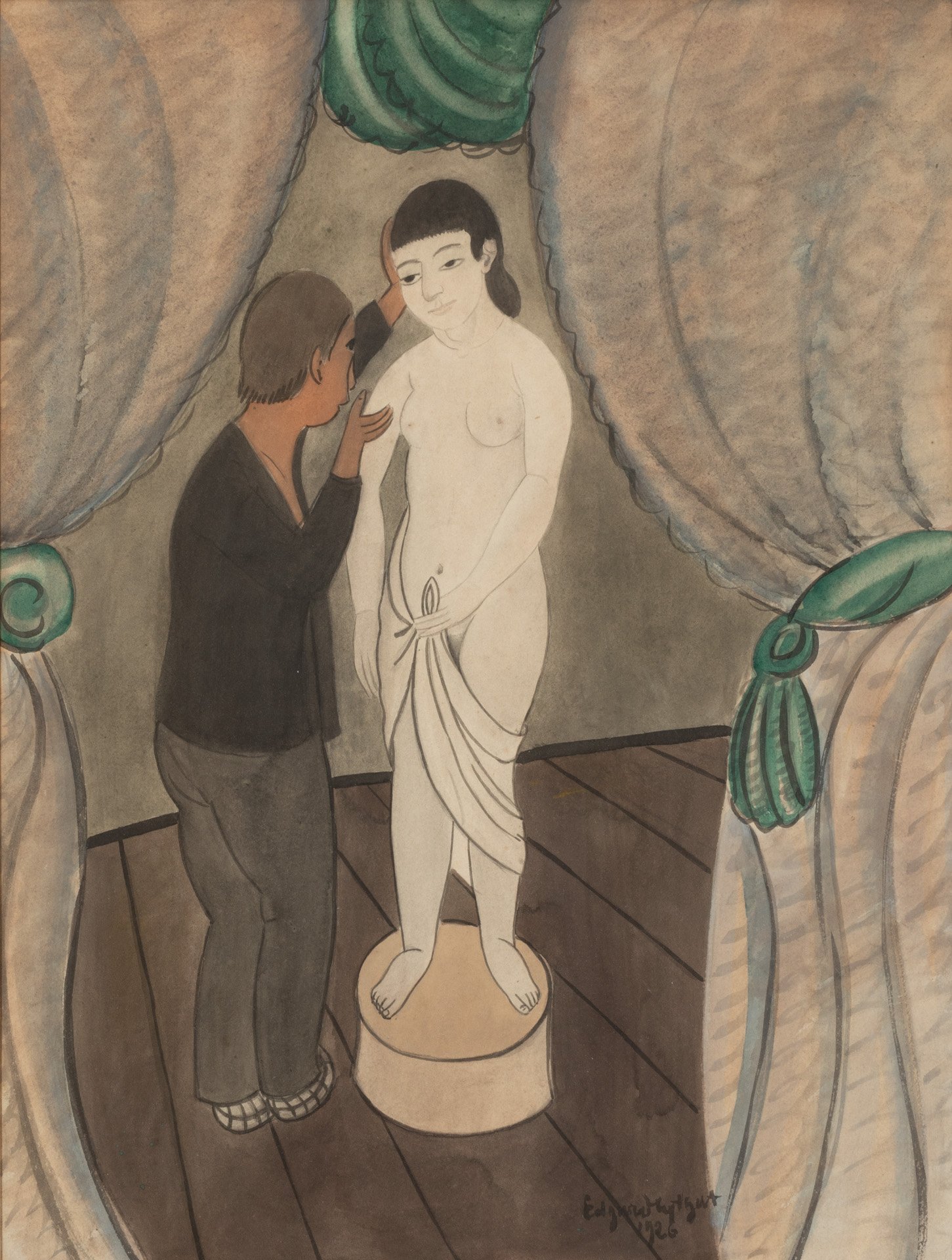 In the 1920s, Tytgat developed a deeply personal form of Expressionism, strongly inspired by folk art. A passionate admirer of music, theatre, and the circus, he drew from these worlds to shape his visual language. Each of his paintings tells a story — his art remained resolutely narrative and illustrative. Recurring themes include the relationship between men and women and scenes drawn from his own life. During this period, Tytgat