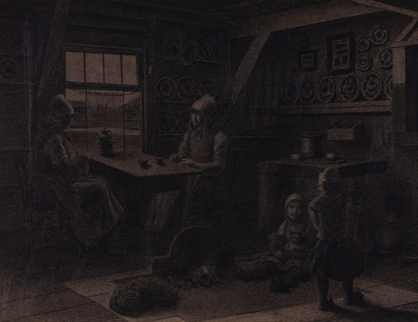 Xavier Mellery’s staid in Zeeland around 1878–79, where he settled thanks to the Belgian novelist Charles De Coster (1827–1879), who had invited him to illustrate his story about the island of Marken for the journal Le Tour du Monde. At that time, still modest and deeply rooted in its traditions, the isolated island struck the artist with its introspective and melancholy character. This fishing village, seemingly frozen in time, became a recurring subject that Mellery revisited over the years. The traditional costumes — reminiscent of sixteenth-century dress and worn by the island’s secluded inhabitants — fed into an idealised vision of life, similar to the one he would later encounter in Bruges and among the Beguines.